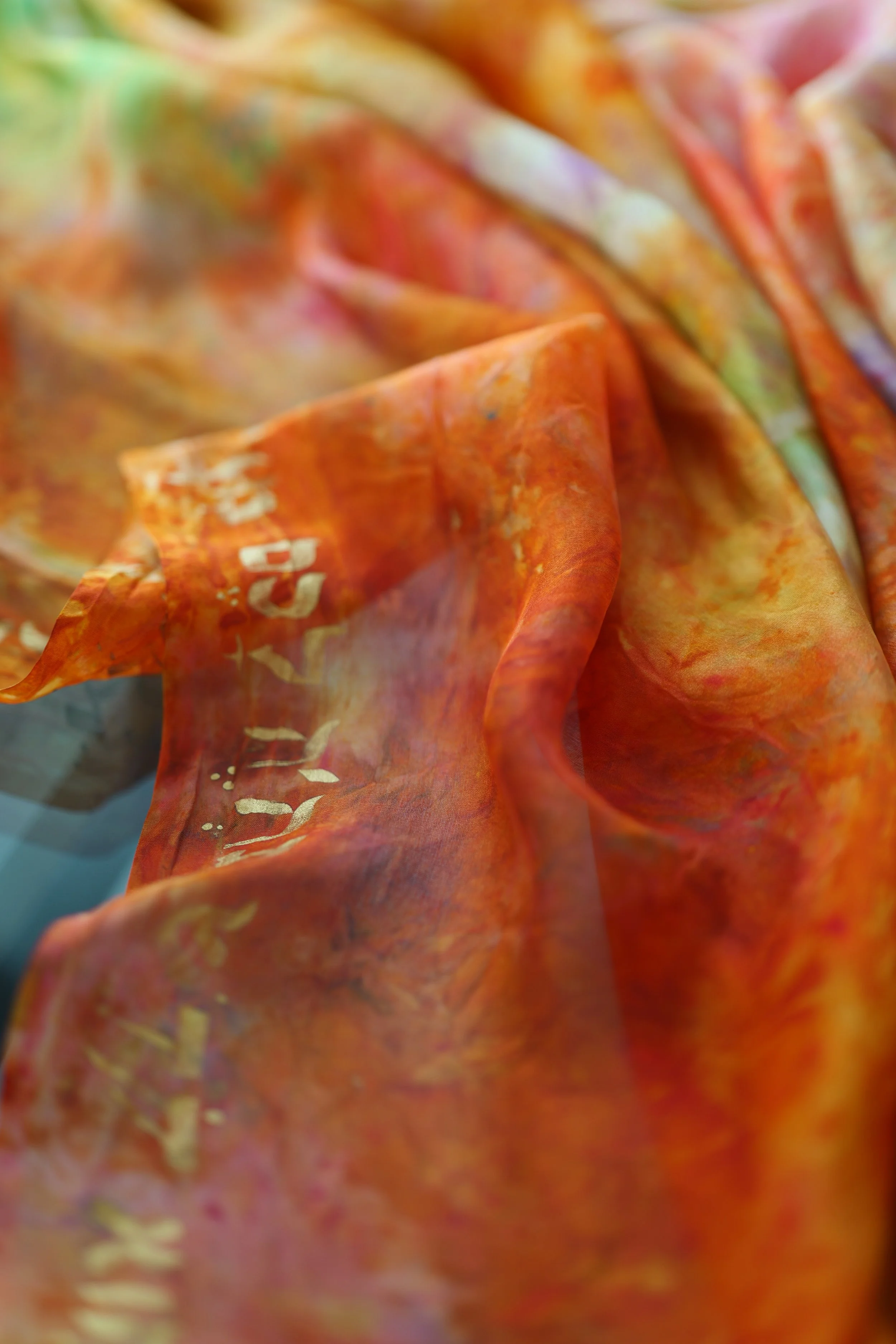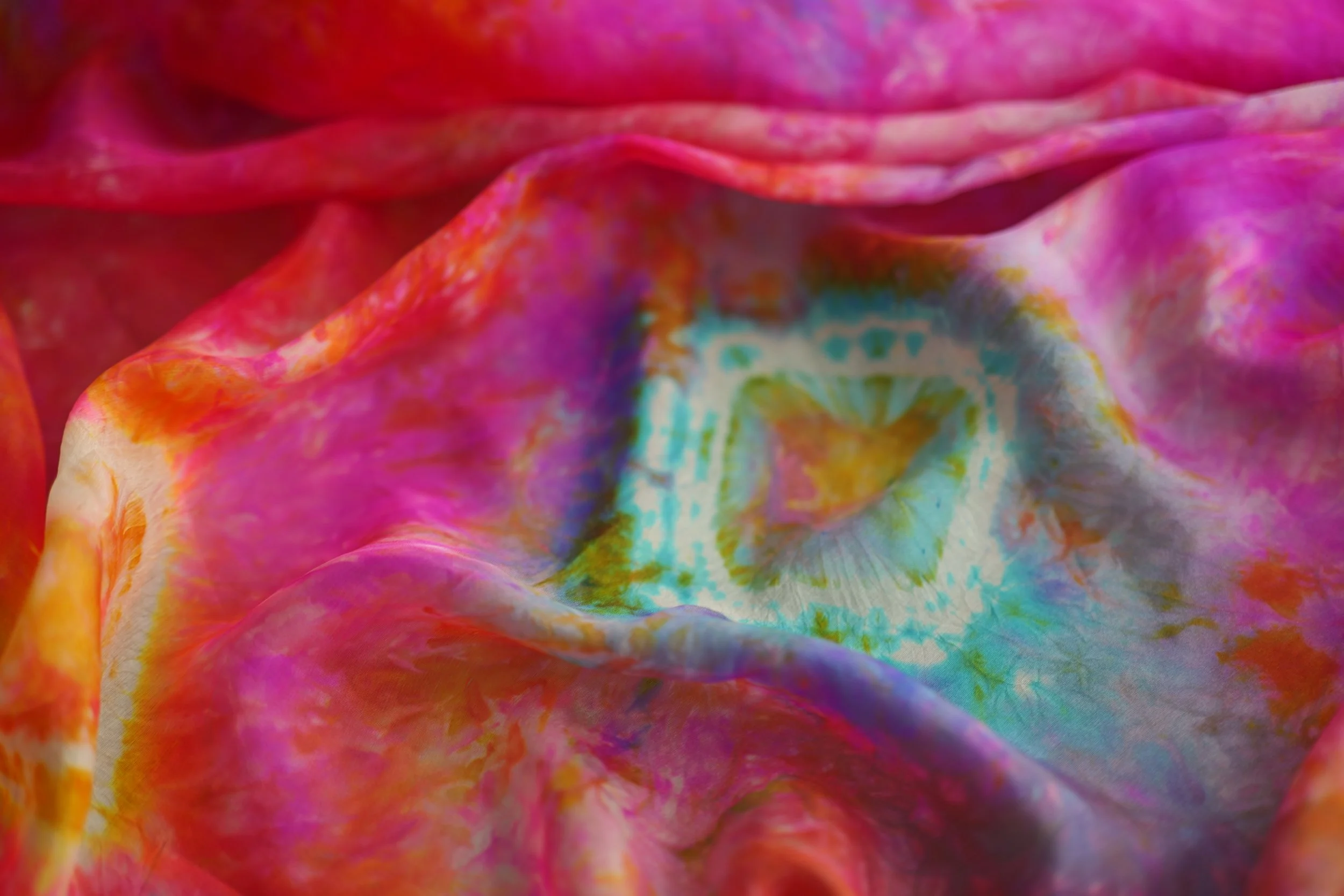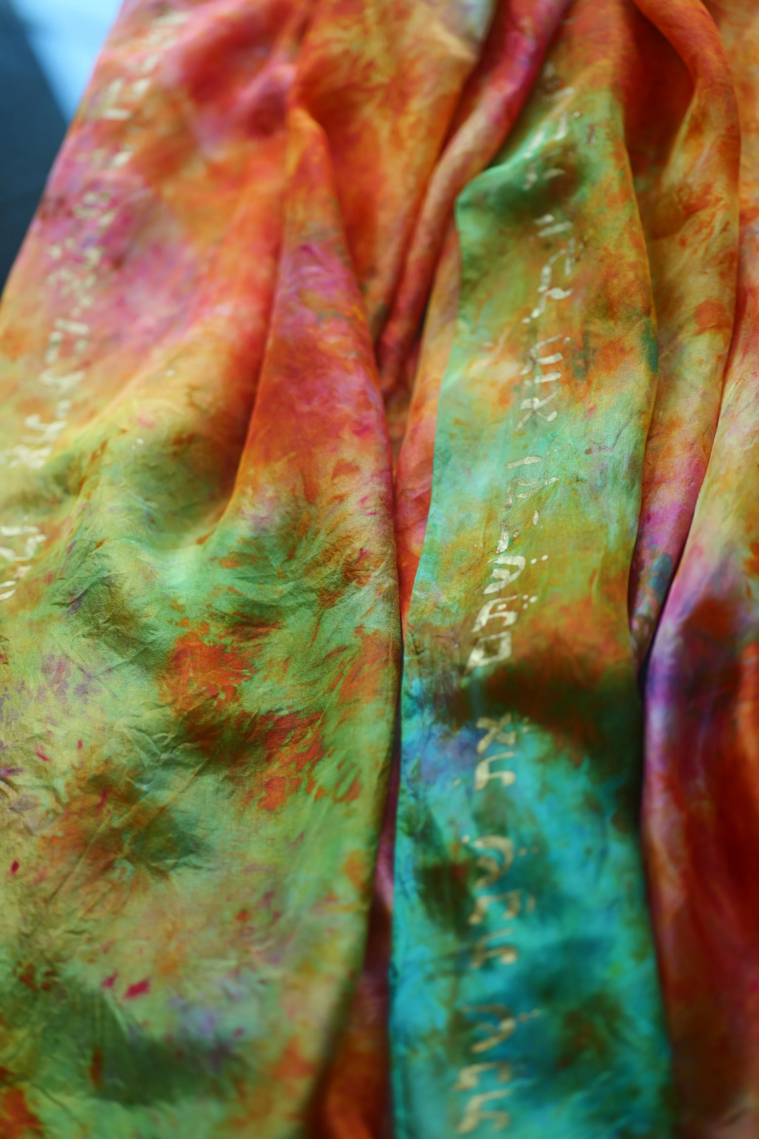 Each worship instrument is crafted after entering into the presence of God through prayer or worship. Shibori technique is used, which is a traditional Japanese method used to dye fabric. Beautiful, elaborate, patterns are created by tying, bunching, folding, stitching, and wrapping fabric to create resists, or spaces where the dye doesn't soak into the fabric. Often times symbols and patterns come forth with a prophetic interpretation according to the word given to the creation. If led by the Spirit hand painted embellishments may also be added.