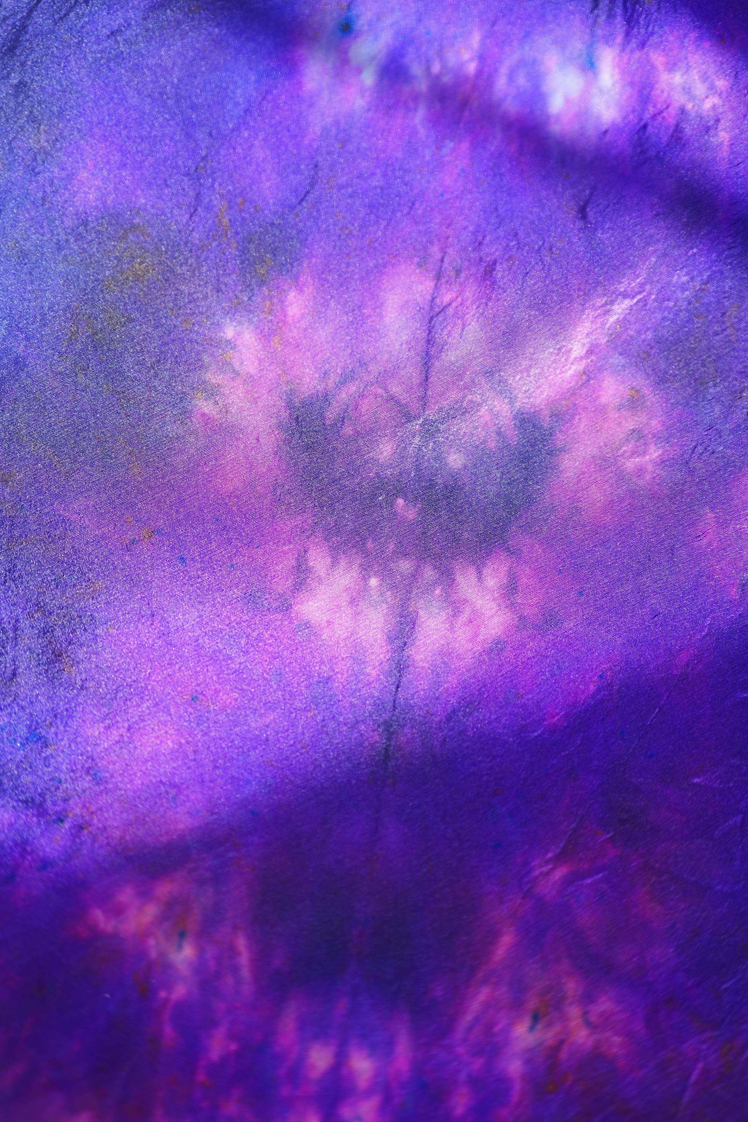 This dye pattern depicts the glory of the LORD shining upon us all as his precious creations. Like a garden of flowers, his light cultivates us into his very image. According to the greater glory of the new covenant in 2 Corinthians 3:16, when we turn away from the law and turn to Christ Jesus the veil is removed and we can behold the glory of the LORD with unveiled faces, it is through this soaking in His presence that we become transformed from glory to glory. The transition from the yellow (representing the glory of the LORD) to the pinks and greens symbolizes the garden and creation of mankind that the LORD shines upon. In the Shibori dyed veil, there are 6 symbols in this depicted garden, representing mankind as the flowers in this garden, as man was created on the 6th day. Purple and gold were selected to symbolize the morning glory flower, a prophetic representation of the believer. This flower naturally appears to have light coming from within it, just as the believer holds the light of Christ Jesus.